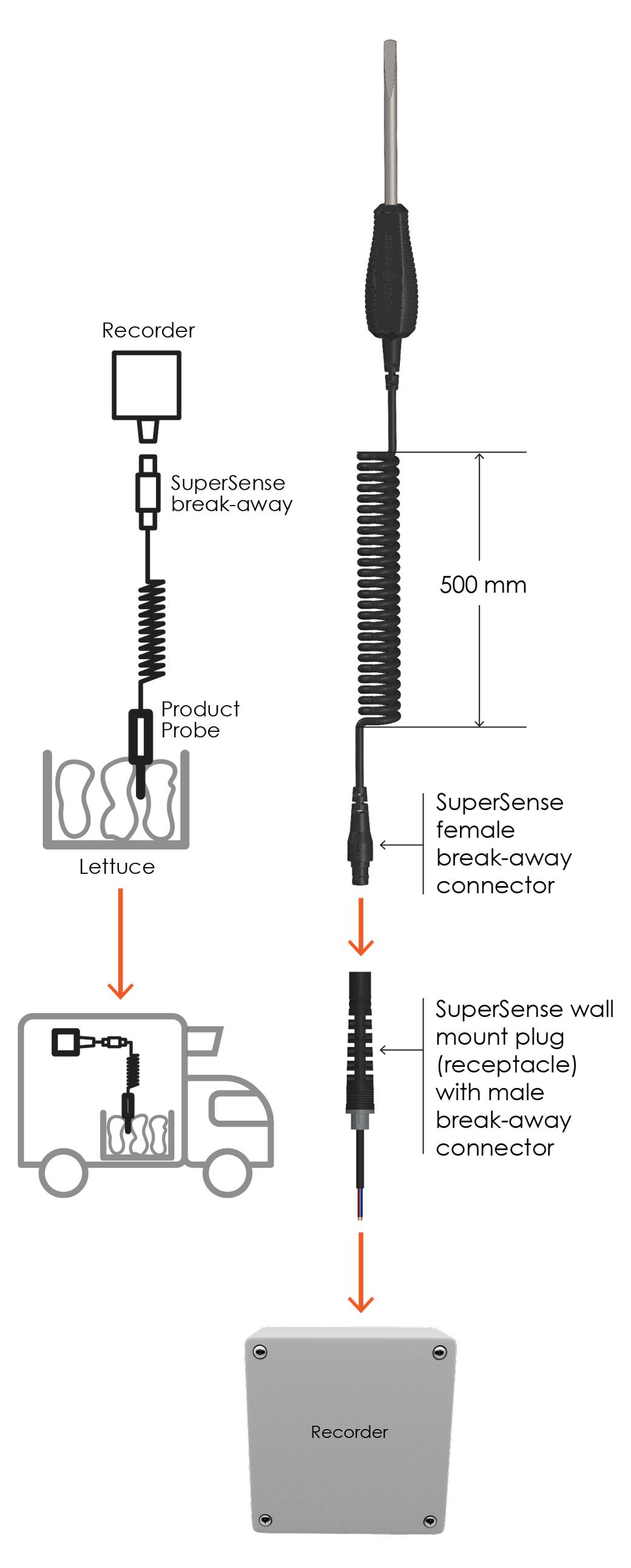 SuperSense product probes are used for measurement of food and product temperatures during cold chain transport and storage. The probes are hand held and can be easily inserted into product packaging to deliver accurate temperatures for compliance to quality processes.